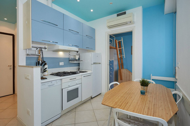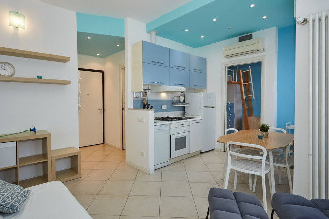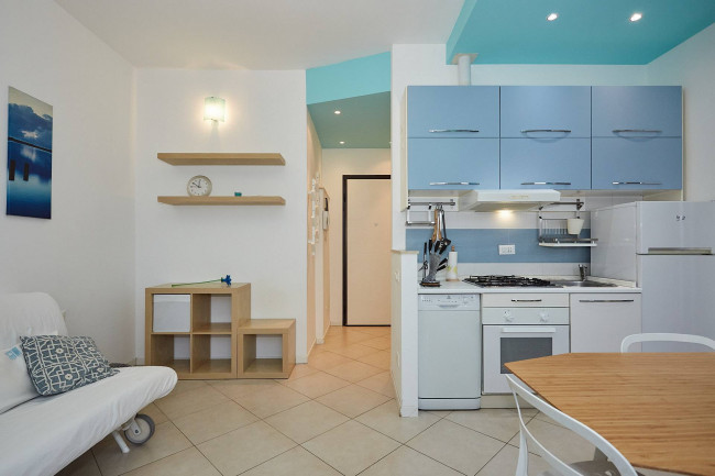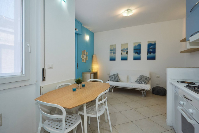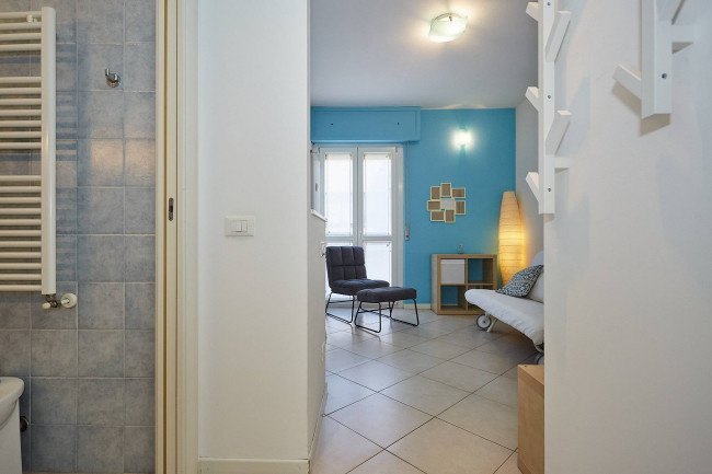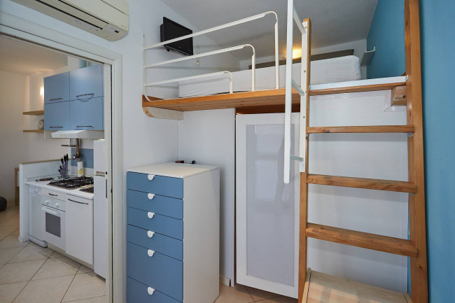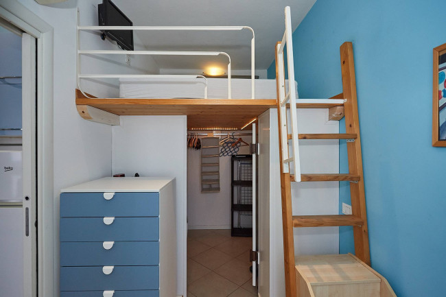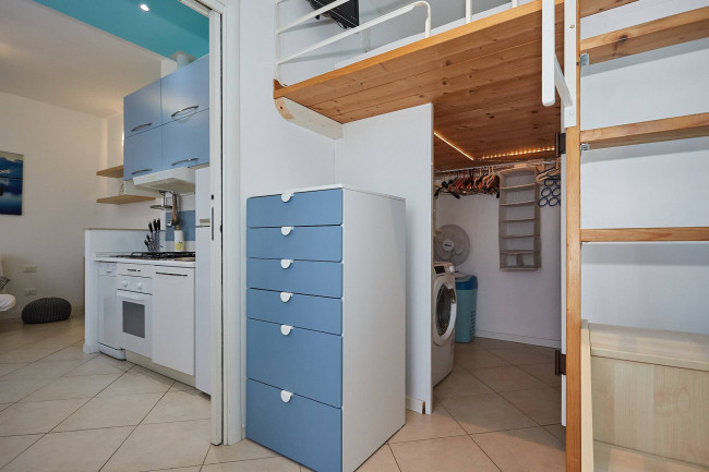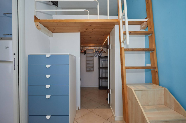 L'immobile si presenta in ottime condizioni ed è composto da un soggiorno accogliente con cucina a vista, da un delizioso terrazzino, da un letto soppalcato che permette di ottimizzare gli spazi e da un bagno funzionale e ben rifinito. La pratica cabina armadio offre un'ampia capacità di contenimento e garantisce ordine e comodità. L'Appartamento è inoltre dotato di aria condizionata e di riscaldamento centralizzato, per garantire così comfort in ogni stagione. Inclusa nella locazione vi è anche una cantina di pertinenza.