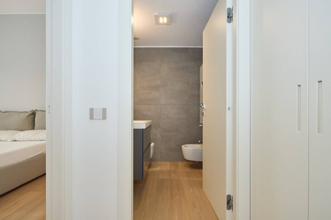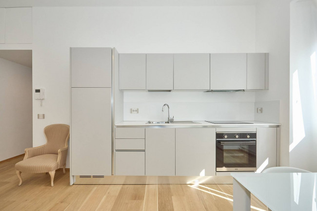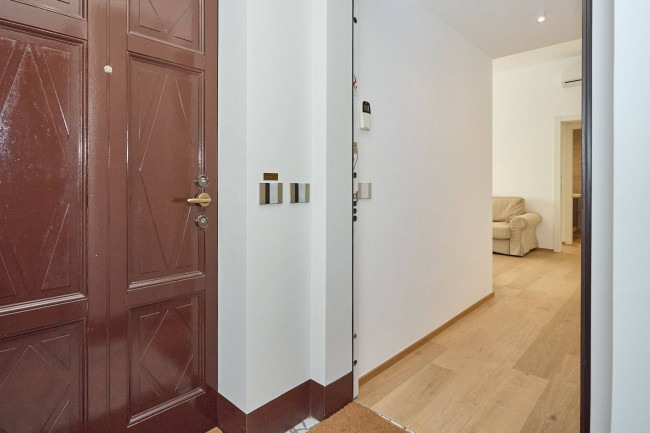 L'ingresso si apre su un disimpegno che introduce con discrezione agli ambienti principali dell'abitazione. Il cuore della casa è l'ampio soggiorno con cucina a vista completa di tutti gli elettrodomestici, un ambiente moderno e conviviale che gode di un'ottima luminosità naturale grazie alla presenza di grandi finestre affacciate su Viale Bligny. La zona giorno, razionalmente distribuita, è perfetta sia per momenti di relax che per occasioni conviviali.