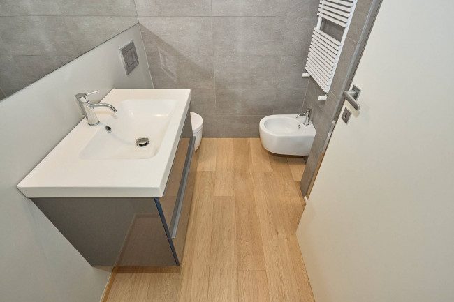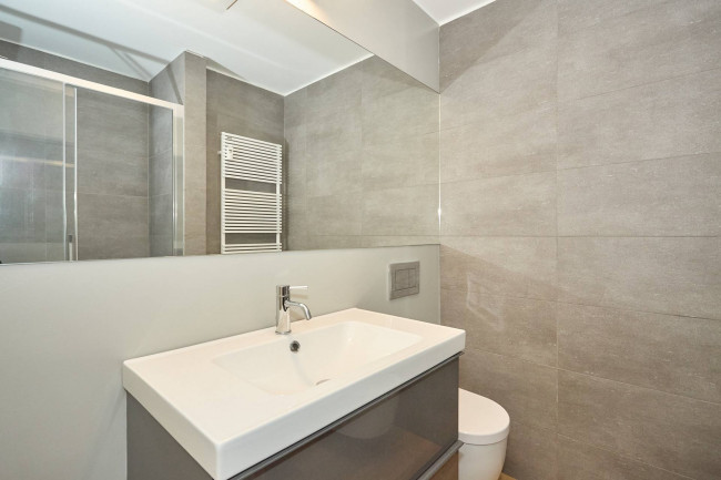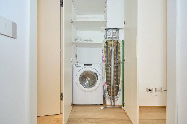 La zona notte è composta da un piccolo disimpegno che funge da zona lavanderia con ripostiglio e una lavatrice/asciugatrice, un bagno, anch'esso completamente ristrutturato, con sanitari sospesi. un comodo box doccia, e per finire una ampia camera matrimoniale, dotata di un comodo letto alla francese e una generosa armadiatura.